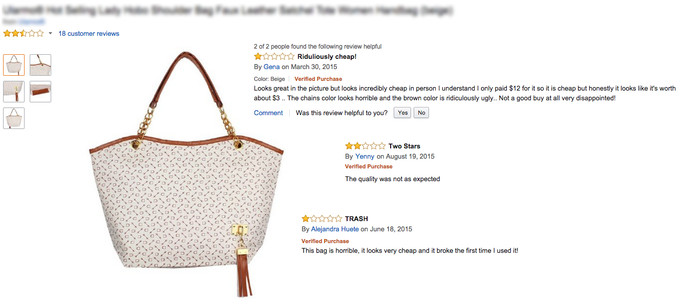 Bad reviews for a bag