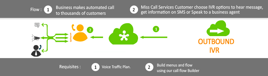 With an outbound IVR, your business can make automated calls to thousands of customers specified by you, read out options and record their inputs. You can save time and money with an outbound IVR.